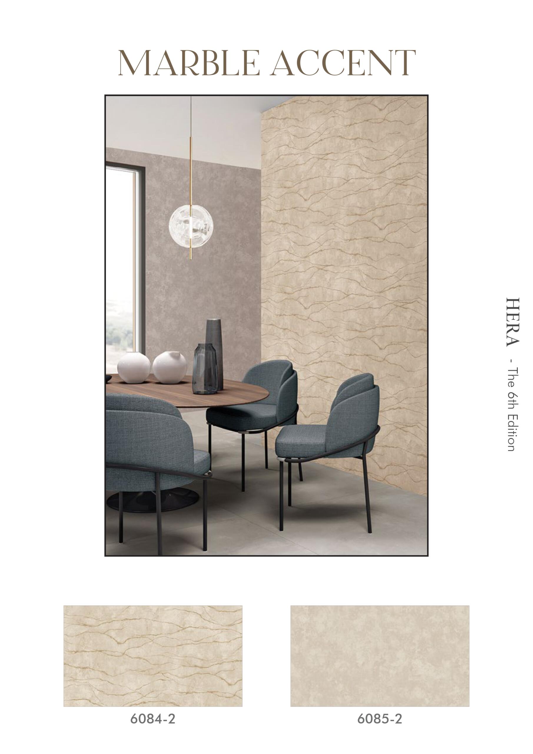 Walls play a central role in shaping interior aesthetics, and the HERA collection brings them to life through a wide variety of textures, patterns, and finishes. From dramatic accent wallpapers and elegant marble textures to botanical motifs and classic damask designs, each wallpaper in this collection is crafted to create visually striking spaces.