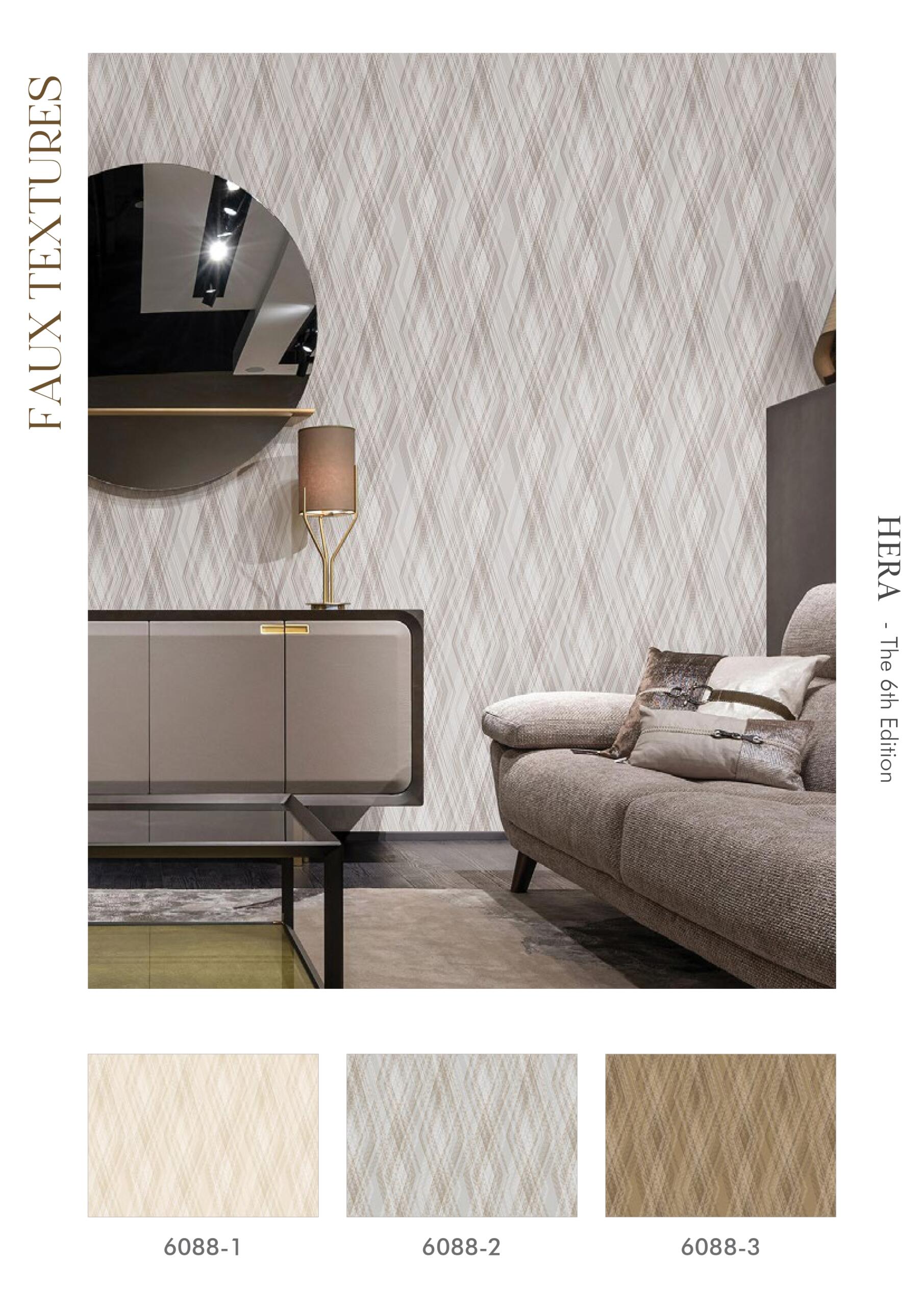 The HERA – 6th Edition Collection is a premium range of Korean wallcoverings featuring bold textures, metallic finishes, elegant patterns, and contemporary designs. Crafted with high-quality vinyl material, this collection transforms interior walls into artistic statements with luxurious style and durability.