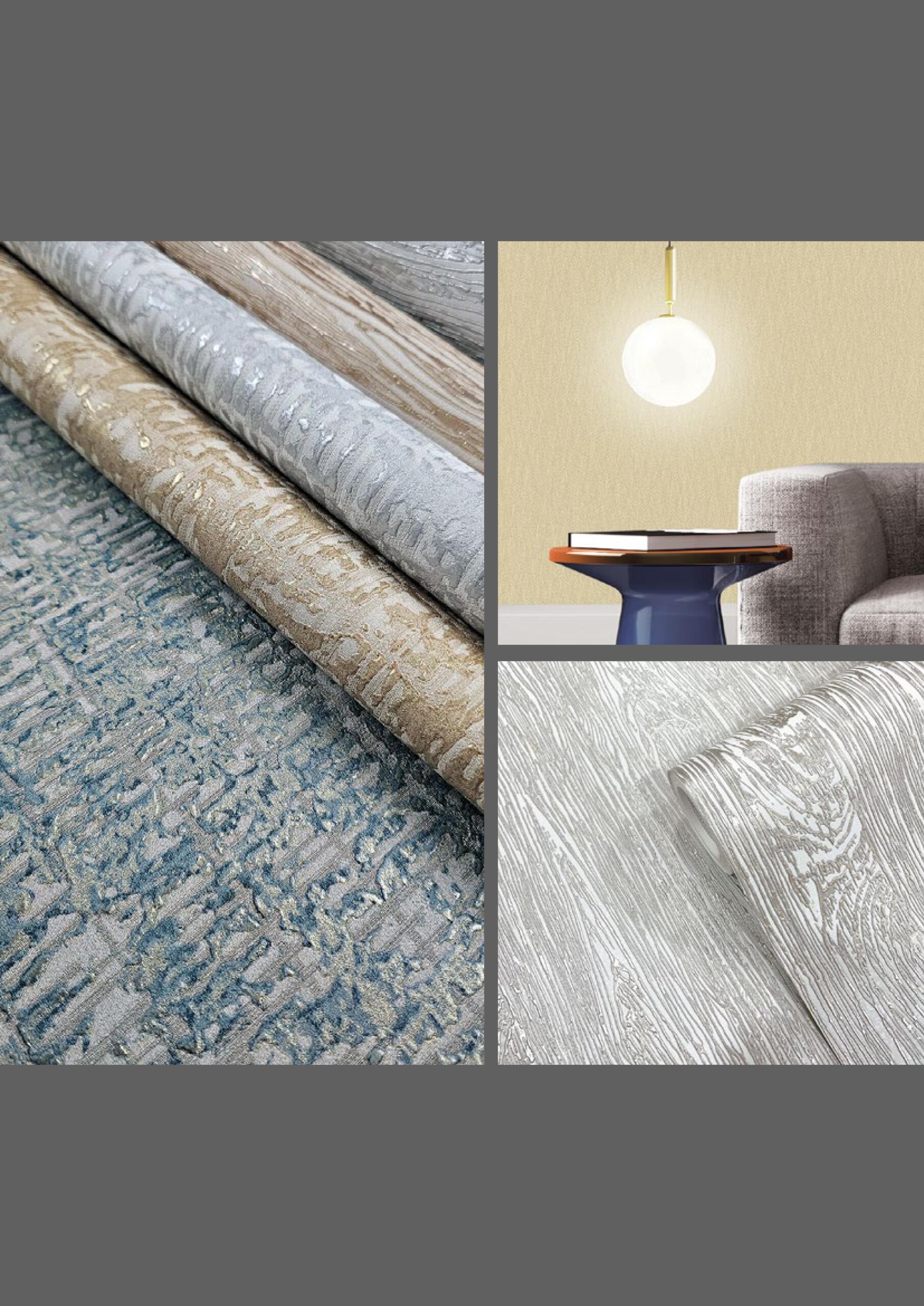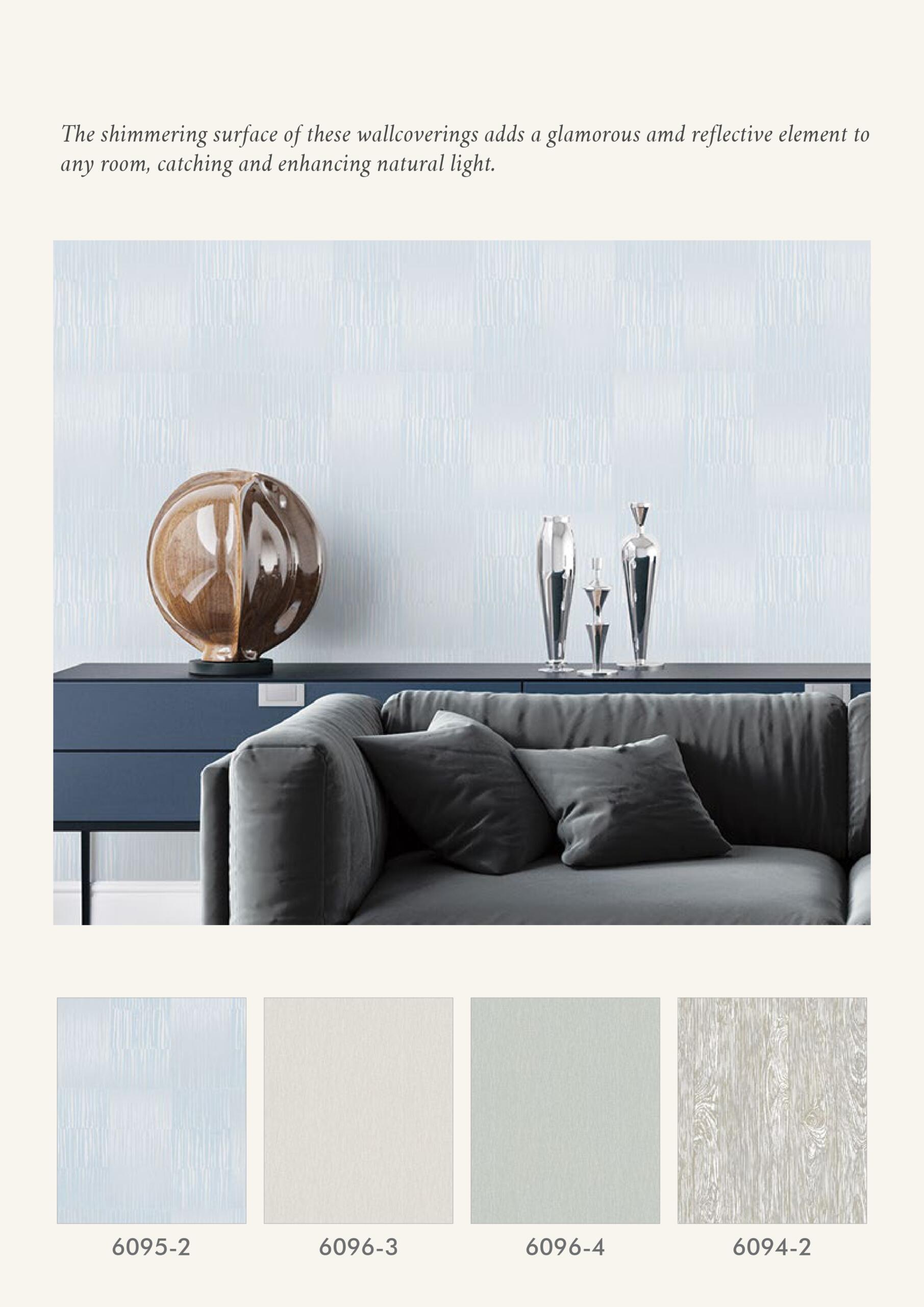 The collection features metallic surfaces, textured finishes, natural-inspired patterns, and modern geometric designs, allowing designers and homeowners to create both contemporary and vintage-inspired interiors. Some wallpapers add shimmering reflective surfaces that enhance natural light, while others mimic materials such as marble, wood grain, and fabric textures.